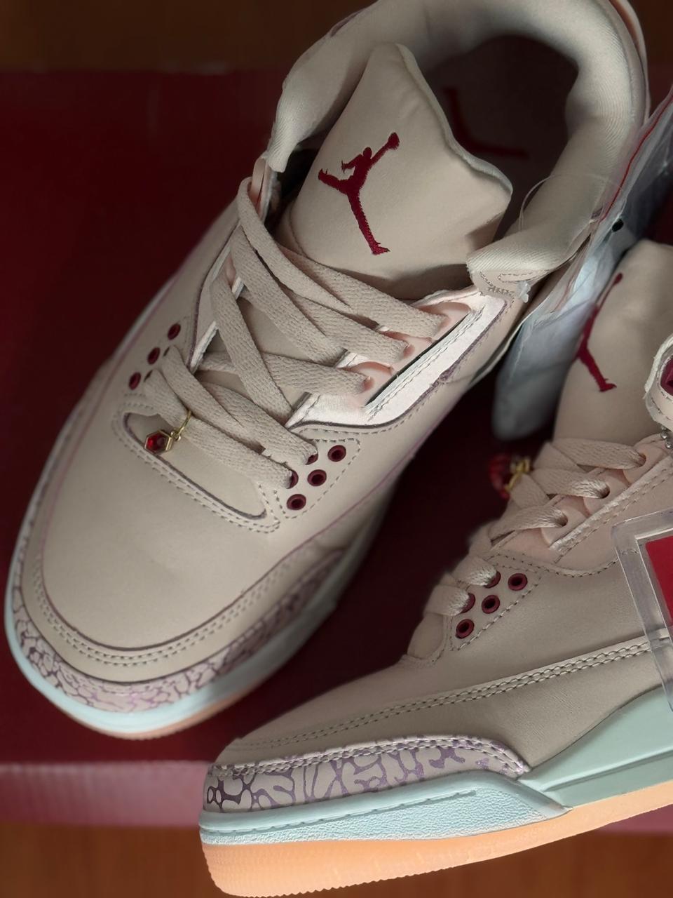 Las Nike Jordan Retro 3 celebran el amor con una fusión perfecta de icónicos detalles y romance. Con su exquisito diseño en tonos suaves de rosa, estas zapatillas no solo rinden homenaje al Día de San Valentín, sino que también mantienen la clásica elegancia que hizo de los Jordan una leyenda.