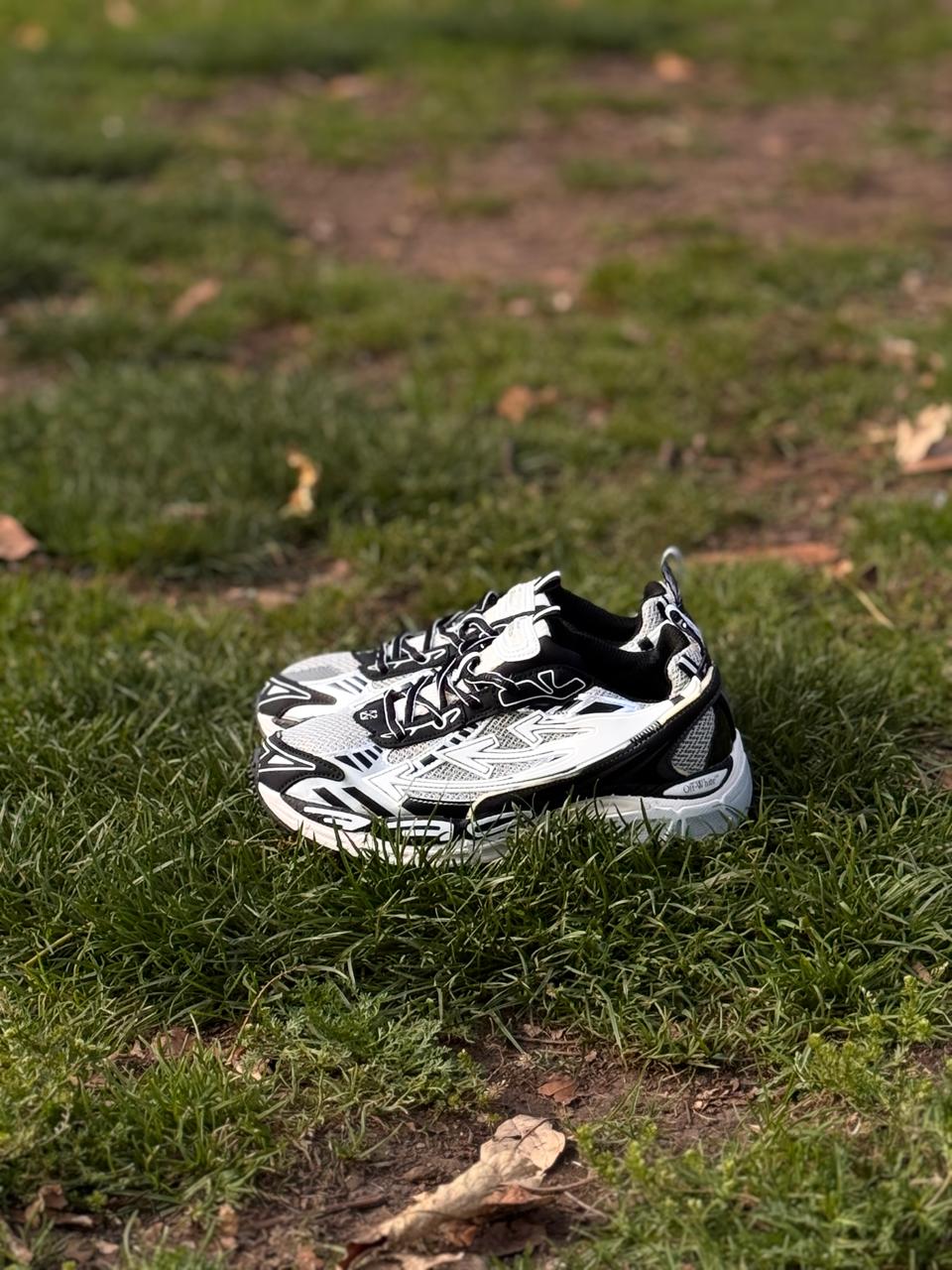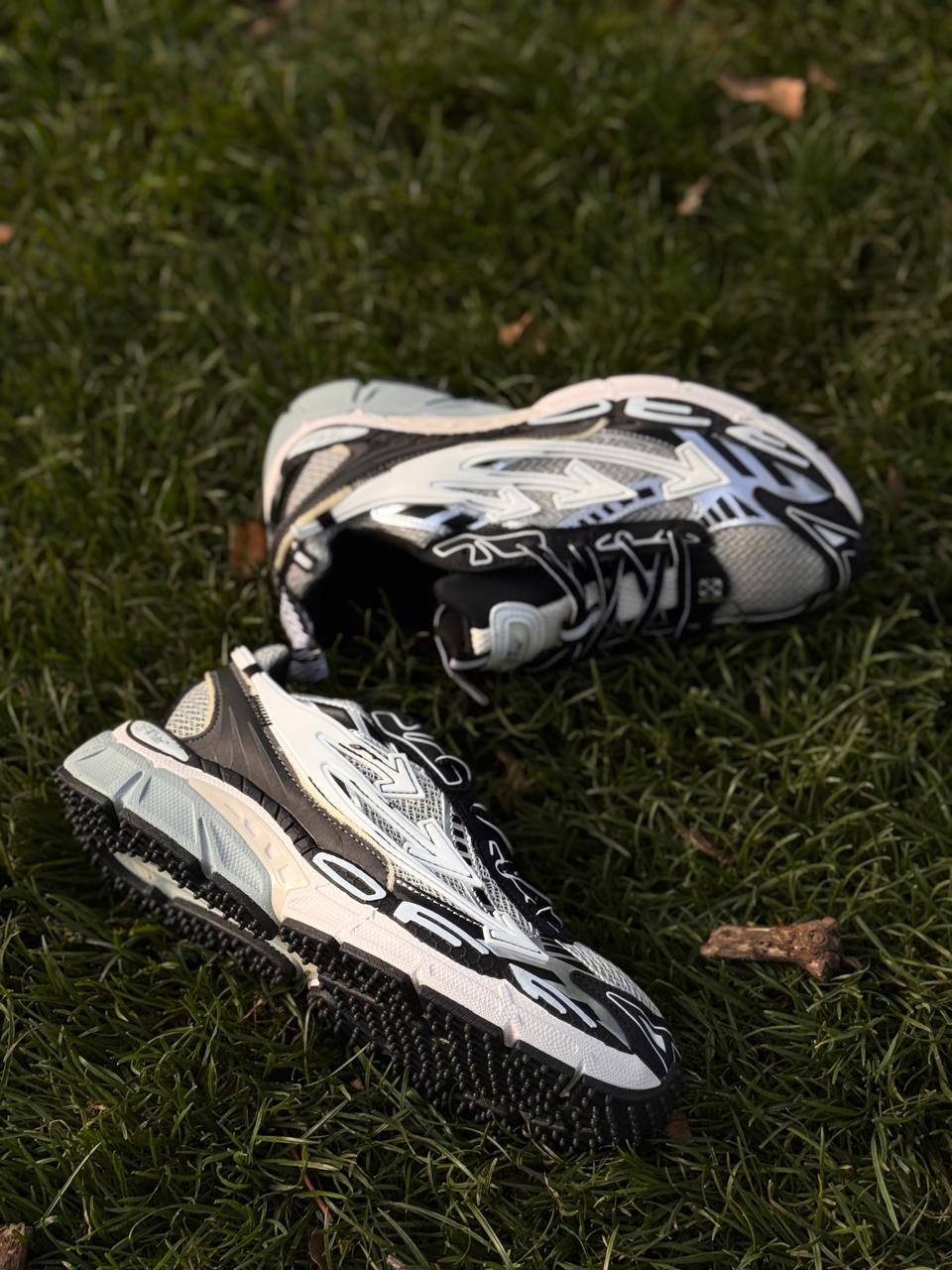 Off‑White Be Right Back es una zapatilla que mezcla una estética de running de los años noventa con el sello de diseño urbano y deconstruido de Off‑White: presenta una parte superior de malla y piel sintética, el icónico motivo de flechas de la marca, tiradores en lengüeta y talón, y una suela de goma con EVA para amortiguación.